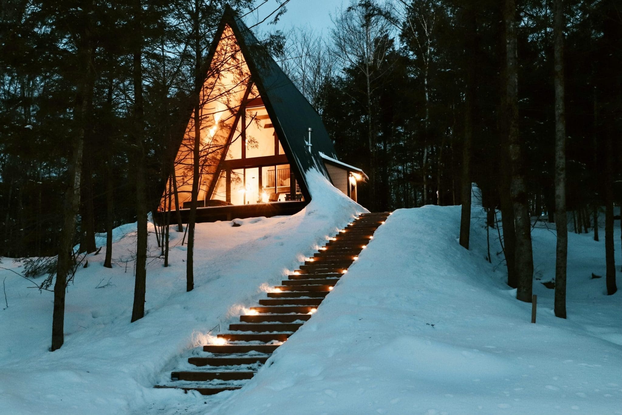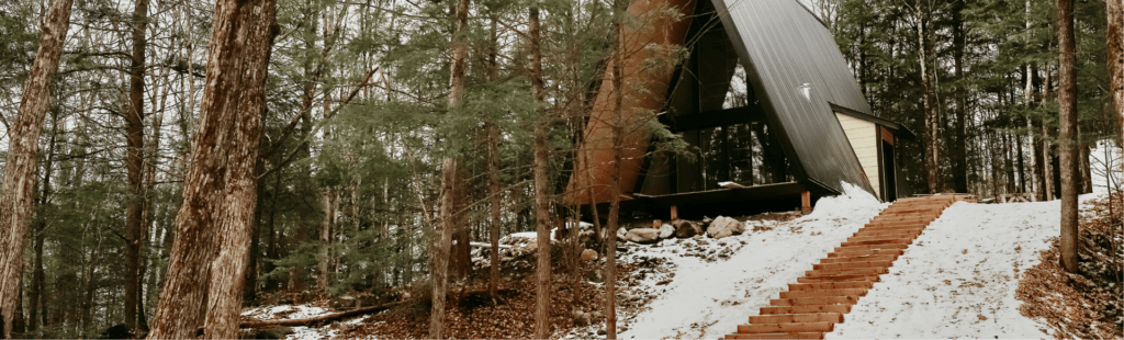 Perché au sommet d’une petite colline, le chalet Belvédère Champlain offre une intimité supplémentaire en étant légèrement en retrait. Accessible par un escalier, il permet de profiter d’une vue en hauteur exceptionnelle sur le paysage environnant. Ce cadre unique vous garantit un séjour empreint de tranquillité, avec une perspective imprenable qui ajoute au charme de ce chalet.
